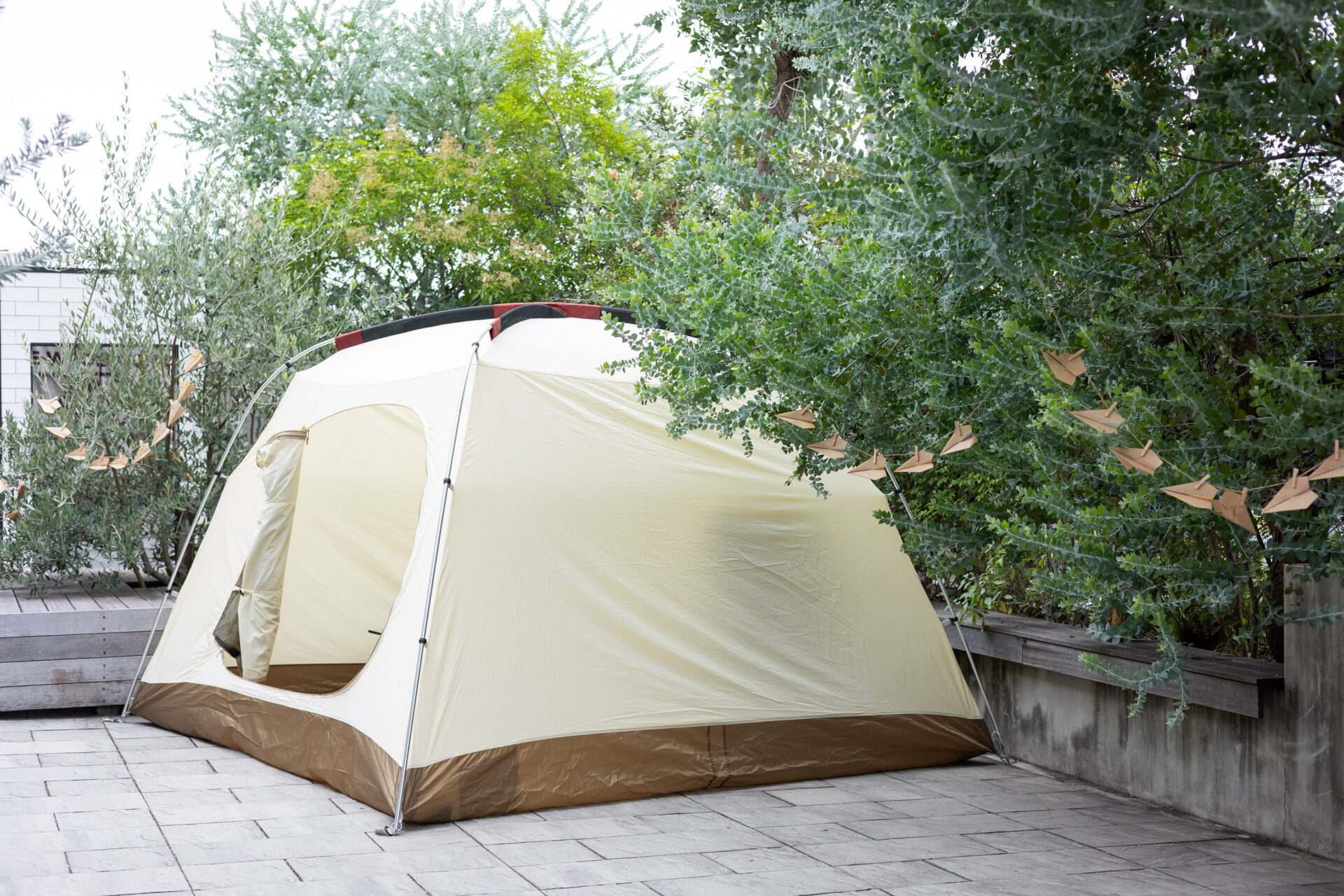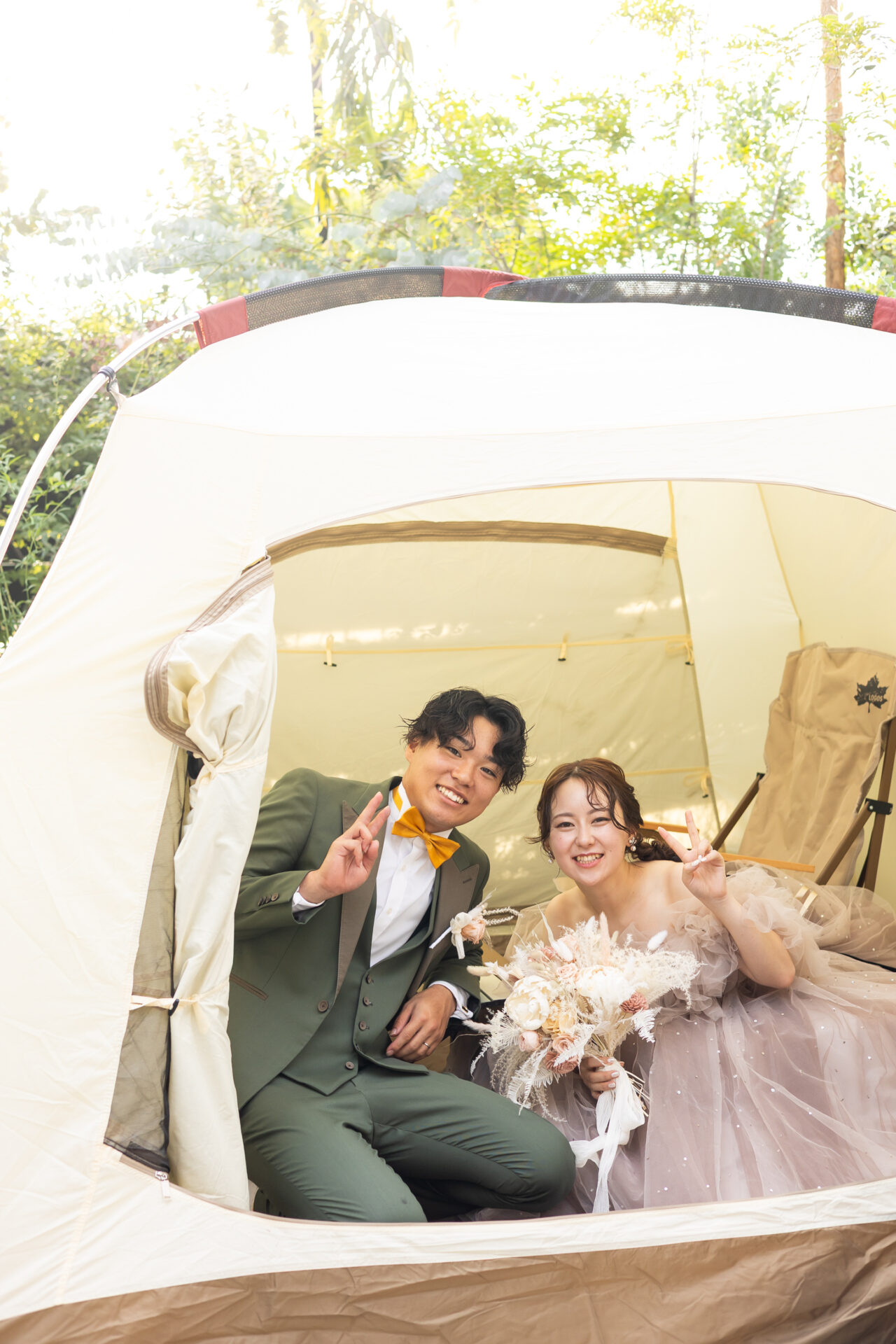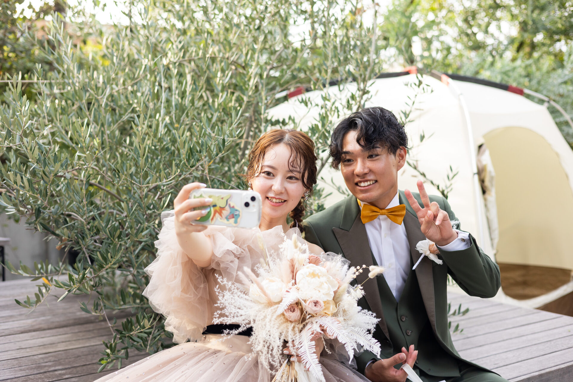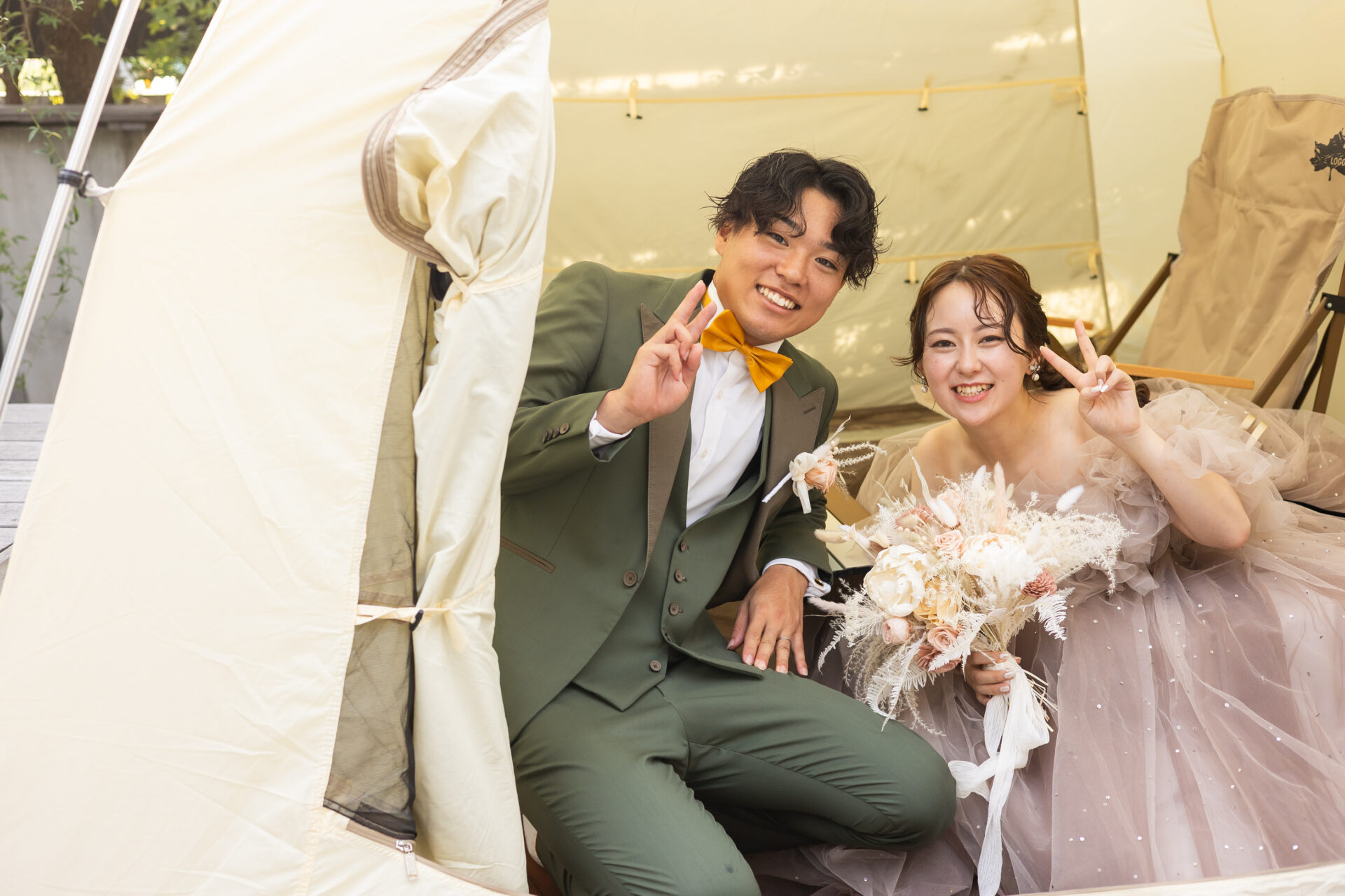 ガーデンでの乾杯は写真映えも良く、キャンプ道具を飾ったり、