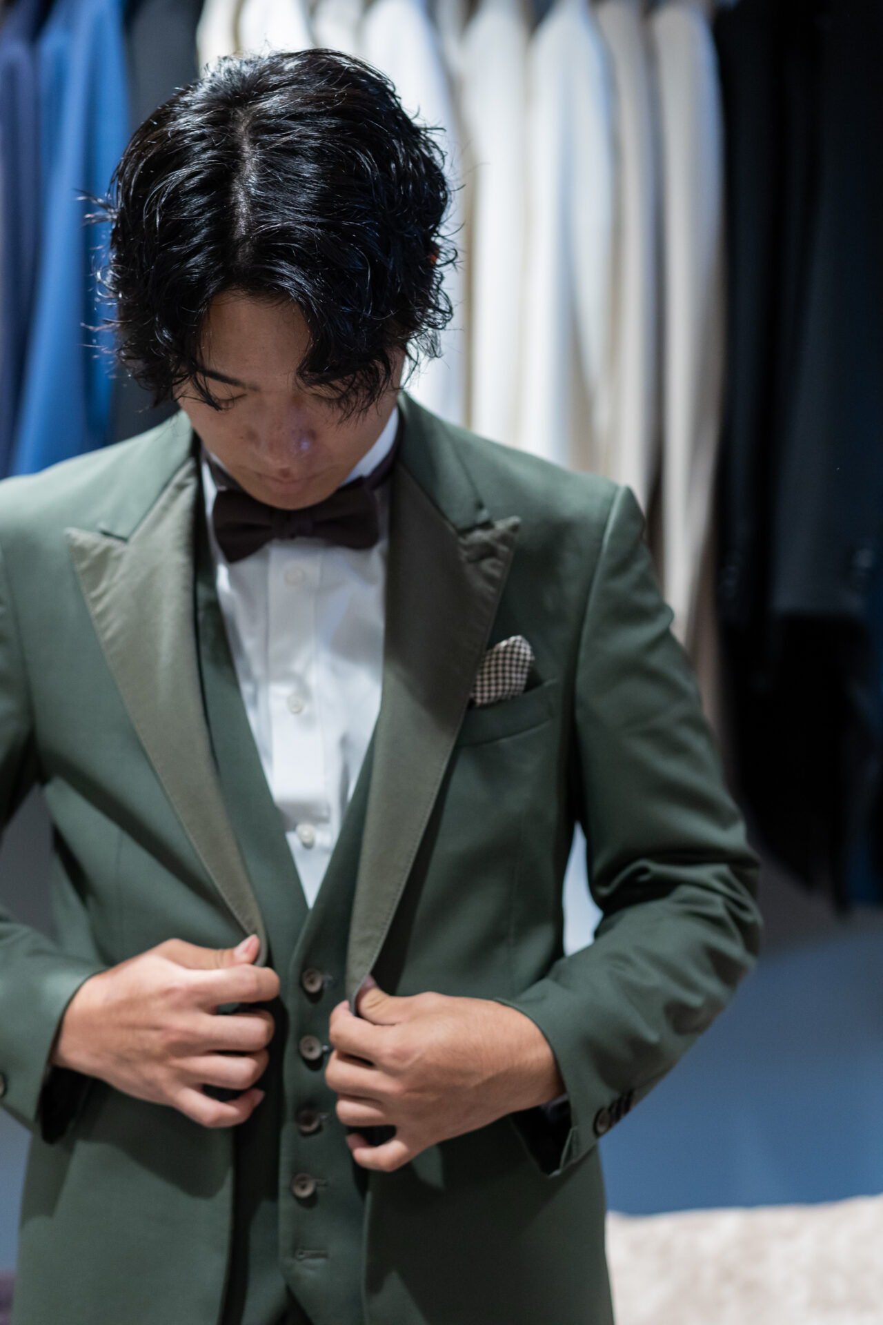 旦那さんもポケットチーフと蝶ネクタイを5回変えてもらっていました。