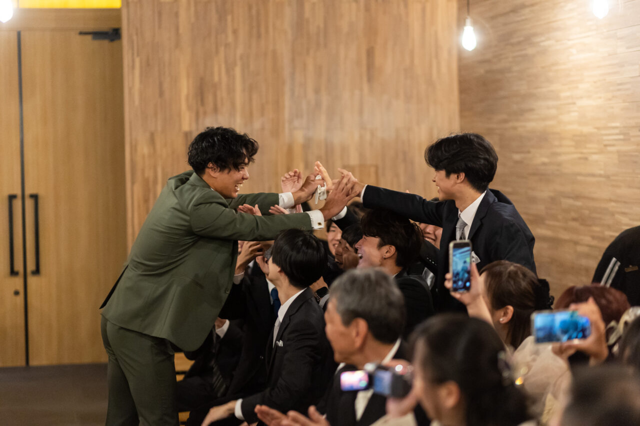 挙式は新郎のハイタッチ入場で和やかにスタートし、