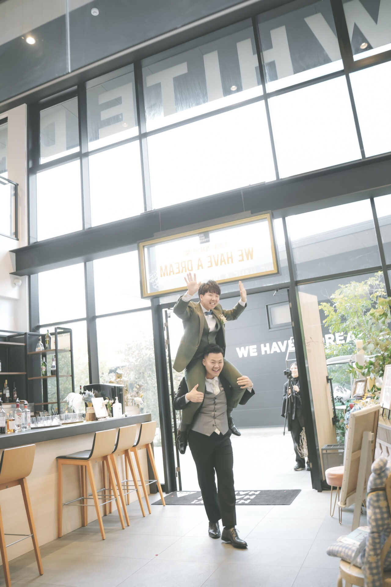 チャペルが十字架ではなく新郎+新婦となっているところや高天井にコンセプトの英文などが書かれているところ、トイレは宇宙人も使えるなど、細部にわたるこだわりがとても素敵です。